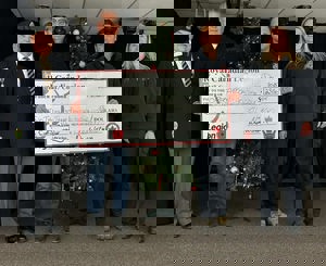 Cheque Presentation made to Operation Christmas in the amount of $2316.85 from last week’s Turkey Raffle that took place at the Corunna Legion in Partnership with the Corunna Volunteer Firefighters. Pictured from left to right are President Shawn MacNeil, Operation Christmas Tree President Stan Marsh, Nick Haynes and Jill Bell.