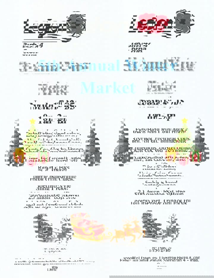 The tickets will be on sale at the Legion, Cash, Debit or Credit Card.