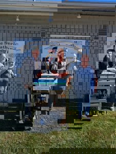Branch 447 President, Shawn MacNeil and Youth Education chair, present much needed school supplies to Deanna from Sir Thomas Moore, School